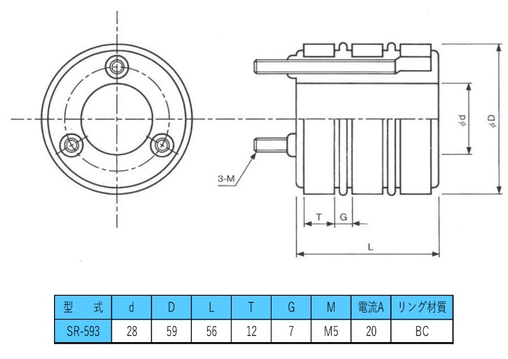 ・3極タイプのスリップリングで、三相モータの電源供給などを最小限の構成でご使用いただけます。