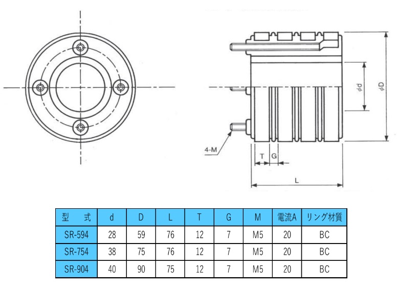 ・4極タイプのスリップリングで、3相モータ+アース線など幅広い用途でご使用いただけます。